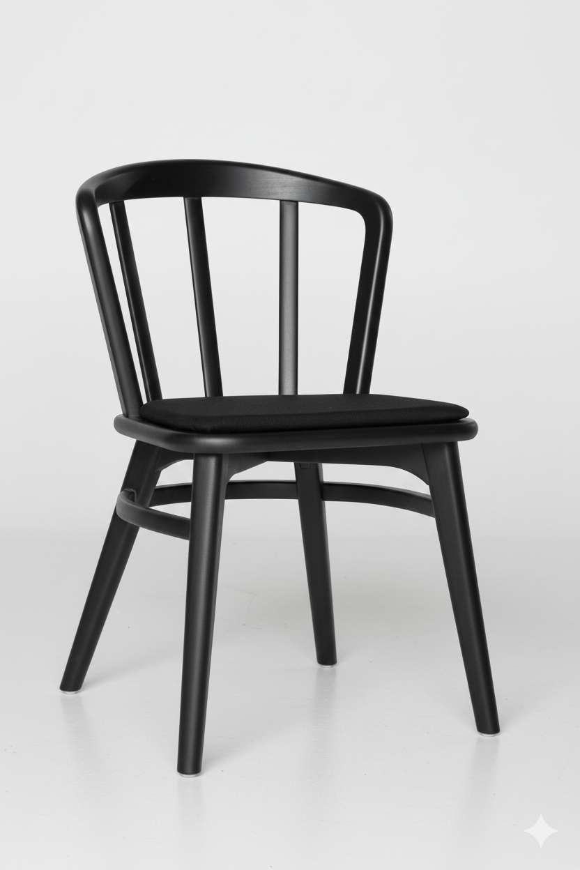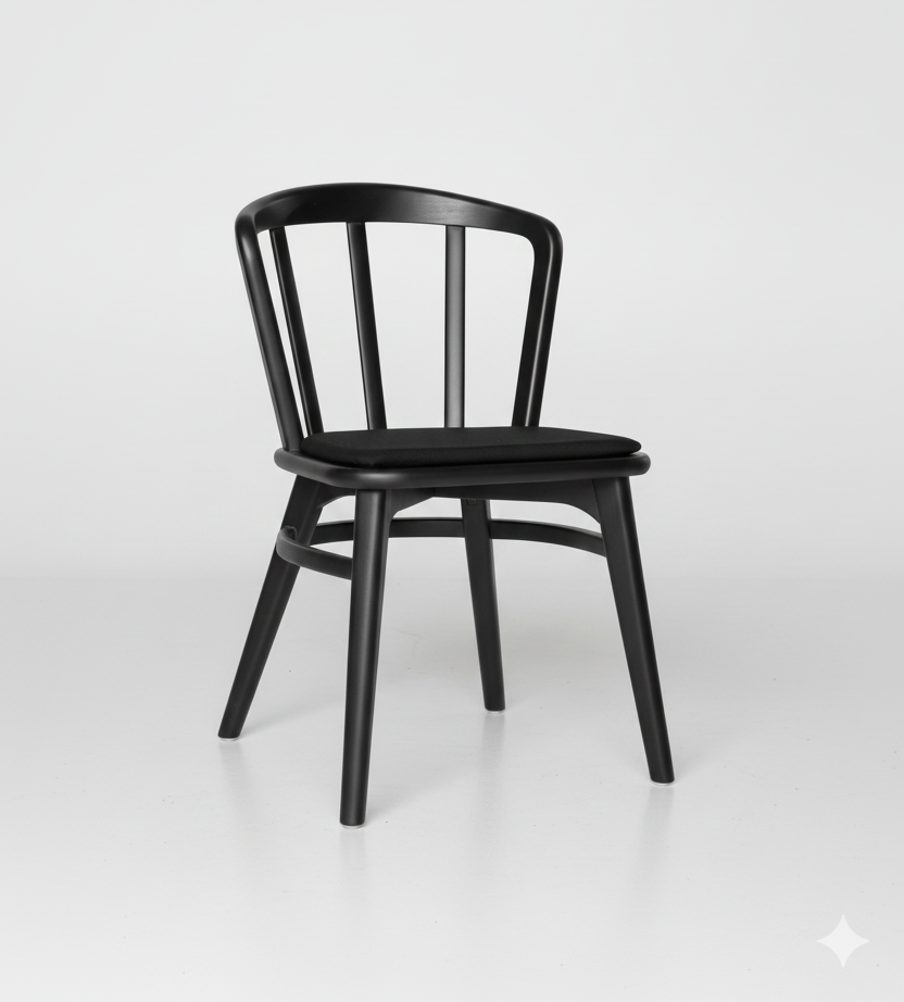 This JASMIN Dining Chair features a classic yet modern design, crafted from durable Mango Wood with a sleek black finish. The chair offers superior comfort with its coordinating black fabric seat, making it a perfect addition to any dining space. With a generous seating proportion, it combines style, substance, and timelessness.